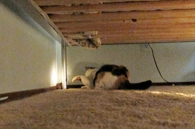 So as punishment, they both (not the mouse) went to the vet clinic for shots and those horrible worm pills. Poor Squeaker was foaming at the mouth . . . Thanks to Marietta for the new kitty cage.